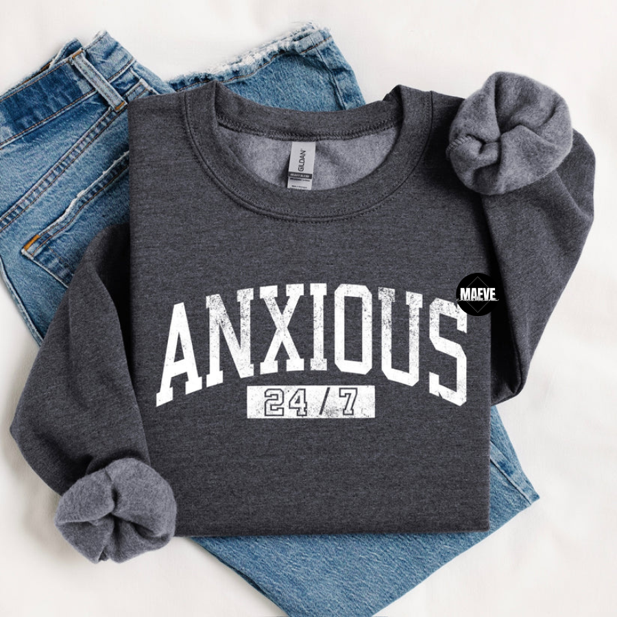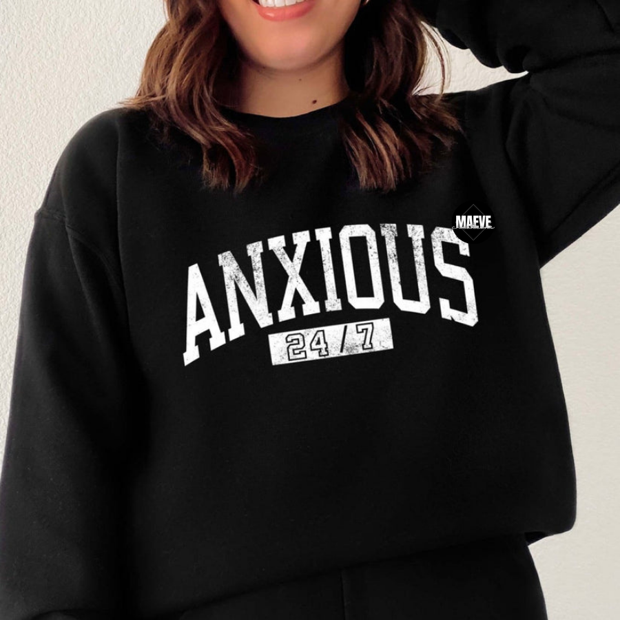 Anxious Crew is a unisex crewneck designed to provide comfort and style for those experiencing anxiety. Its relaxed fit allows for ease of movement while its soft fabric offers a soothing touch. Crafted for all genders, this crewneck is perfect for anyone looking to manage their anxiety in a fashionable way.